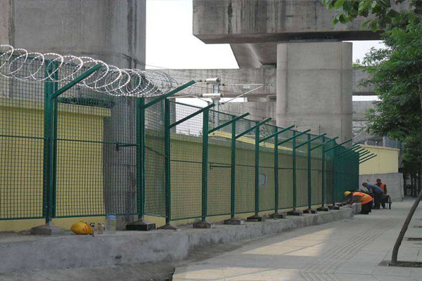 監獄防護網的主要特點:監獄防護網又稱監獄護欄網或監獄隔離柵主要是采用高強度的刀片刺網與普通防護網的結合由V型支架立拄加強型焊接片網安全防盜連接件和刀片刺網組成.刀片刺網是一種新型防護網由銳利尖角鍍鋅鋼板或不銹鋼薄板做刀片鋼絲做芯線組合而成的防護器材.
