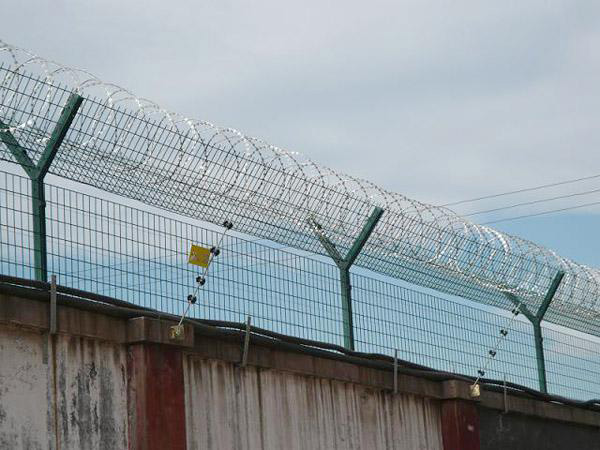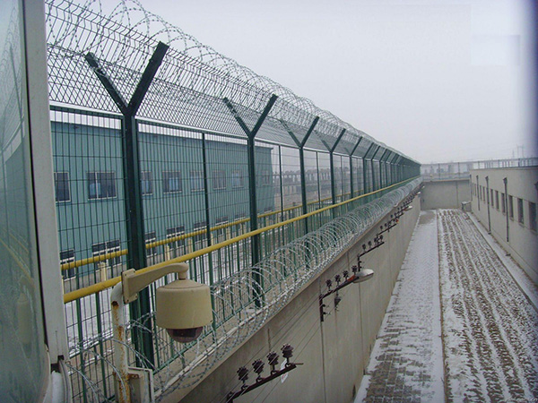監獄護欄網又稱作“Y型安全防御護網”,是由V型支架立柱,加強型焊接片網,安全防盜連接件和熱鍍鋅刀片刺籠組成強度和安全防御性級別很高。近年來,被廣泛應用在監獄,軍事基地等高安全場所。注:如果在監獄護欄網頂部加裝刀片刺絲、刀片刺繩后又很好的增強了安全防護性能。采用電鍍、熱鍍、噴塑、浸塑等防腐形式,具有很好的抗老化、抗曬、耐候等特點。其產品造型美觀、花色多樣,既起到圍欄作用,又起到美化作用。由于具有安全性高、防攀爬能力好,網片連接方式采用特制SBS緊扣件,有效防止人為的破壞性拆卸,橫向四道折彎加強筋,使網面強度顯著增加。